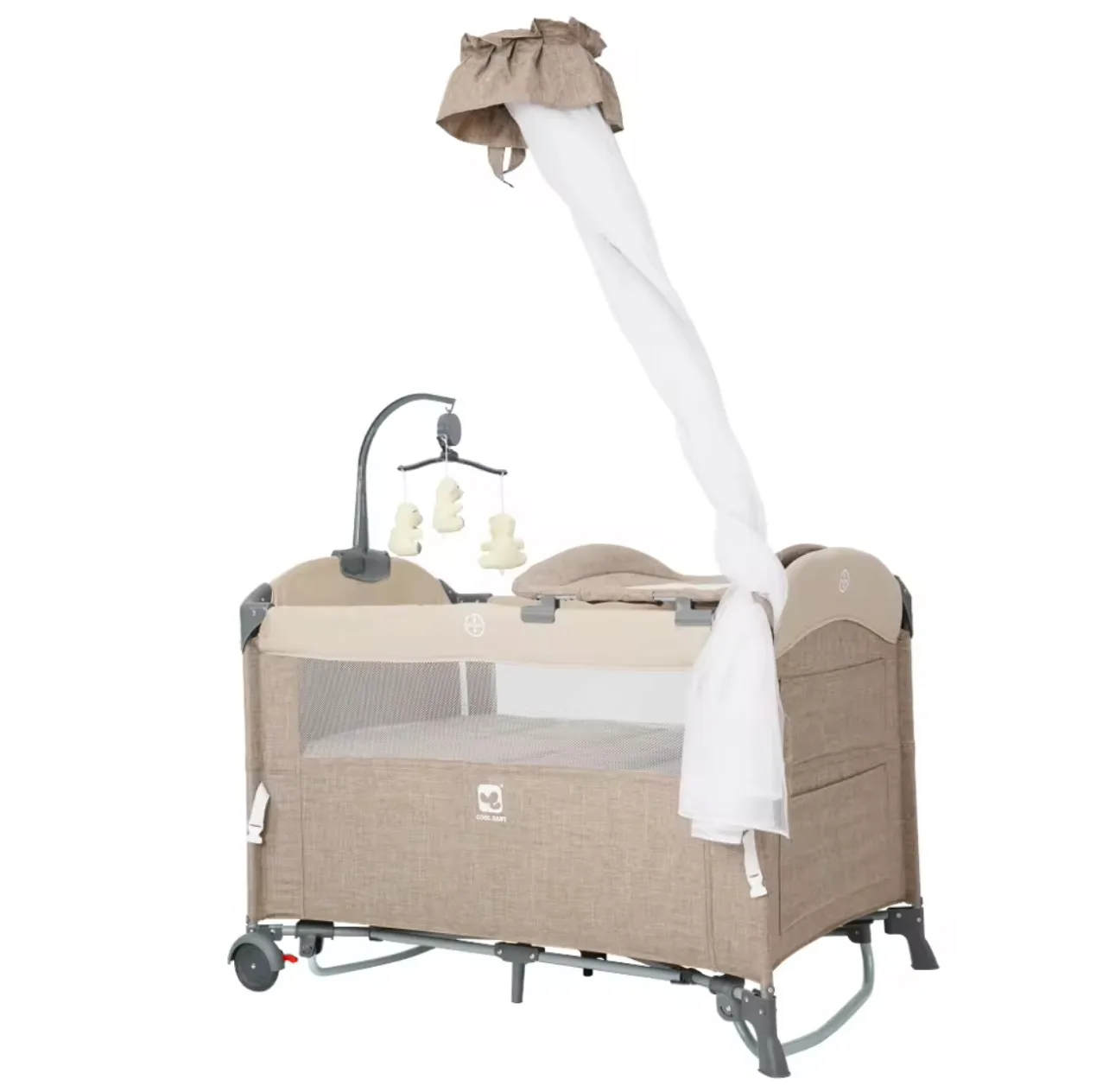 COOL BABY PLAYPEN with net, overhead TOYSand changing station