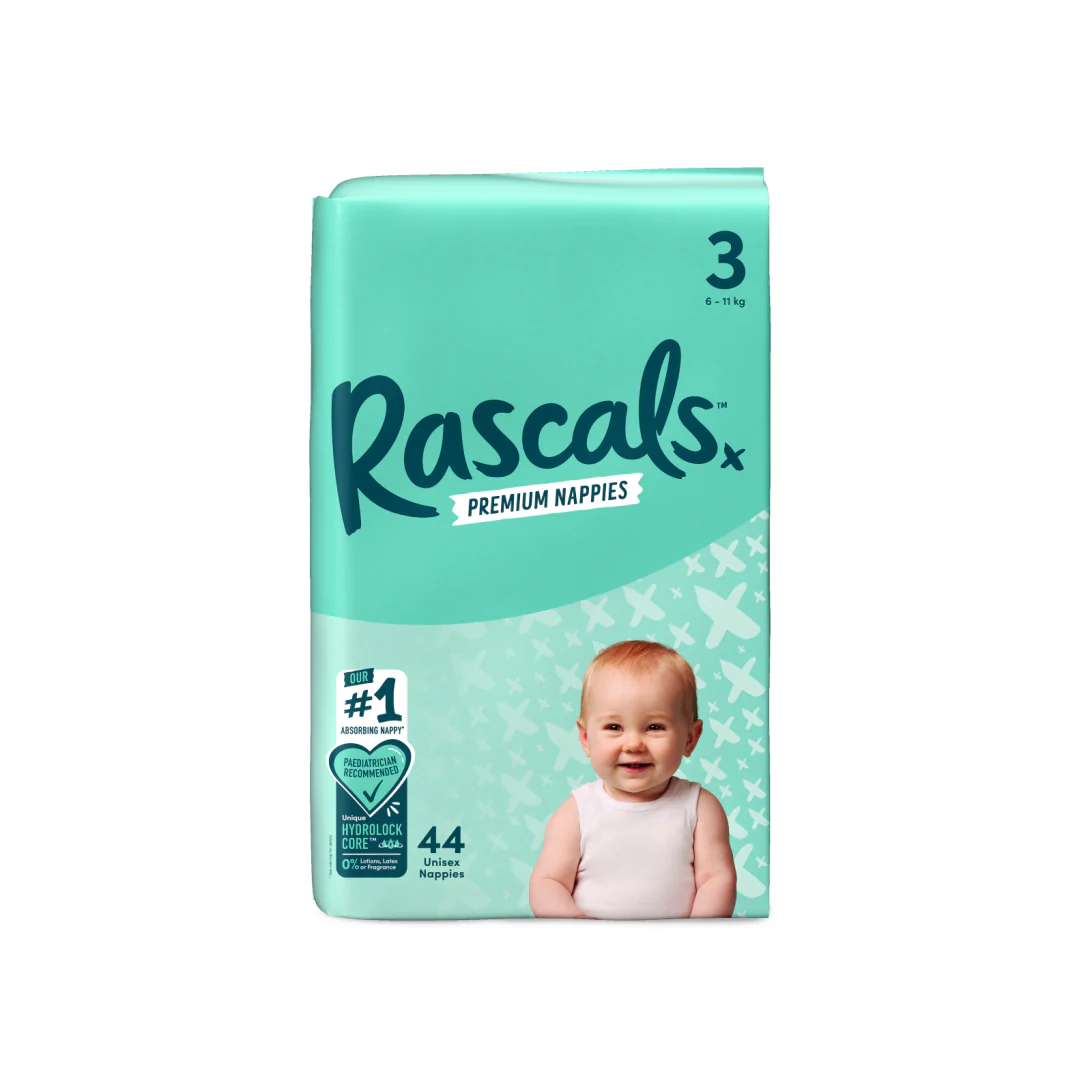 Rascal+Friends Adhesive Crawler Nappy Diapers Size 3 (6-11 Kgs) – 44 Pieces