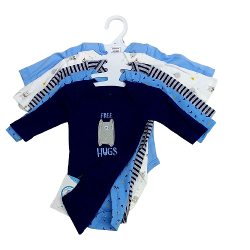 100% COTTON ASSORTED 5-PACK BABY ONESIES