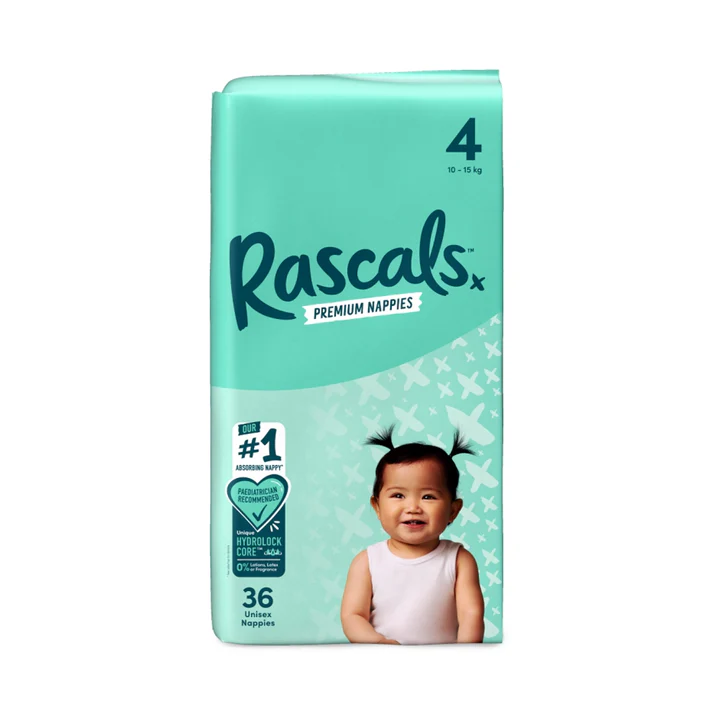 Rascal Premium Adhesive Toddler Nappy Diapers Size 4 (10-15 Kgs) – 36 Pieces
